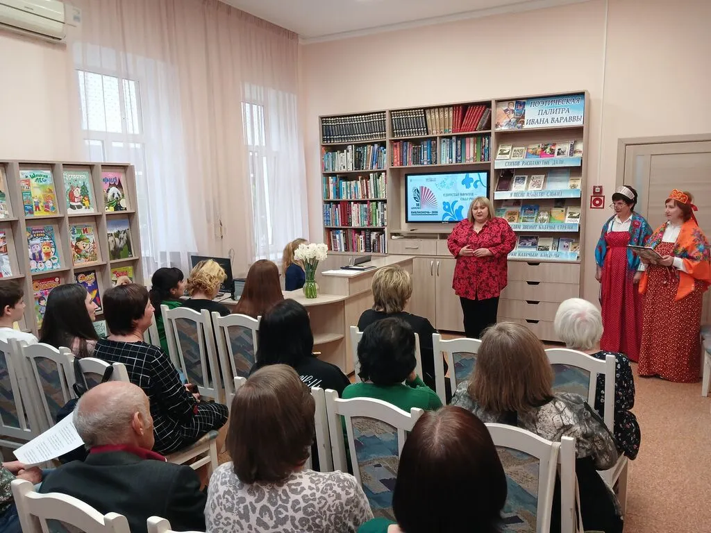 18 апреля в рамках Всероссийской акции «Библионочь – 2026» библиотека распахнула свои двери, как гостеприимный дом, где каждый уголок дышит культурой и теплом. Этот вечер стал поэтическим праздником под названием «Наш дом – Россия», где каждый гость, как драгоценный камень в ожерелье, привносил свою уникальную историю и традиции.